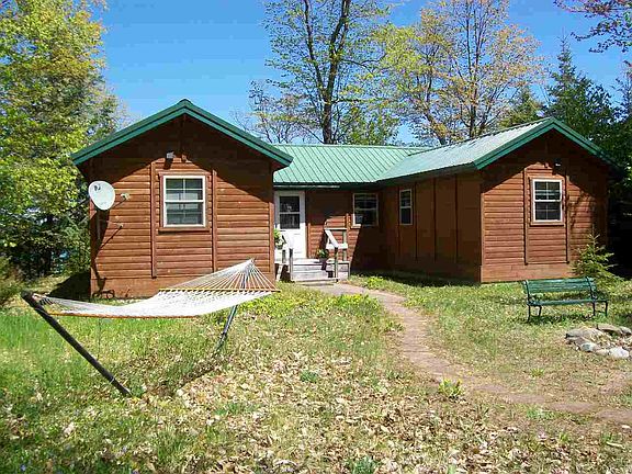 Lake Michigan cottage for sale! Great location, just outside of town. This cottage was built as a guest house in 2002. Cute as a button reminiscent of Cracker Barrel. Two bedrooms, two full baths, all one floor, stackable washer & dryer, gas fireplace and cathedral ceilings. The home is fully tongue & groove knotty pine interior. Loft areas over the bathrooms for storage. French doors to deck overlooking Lake Michigan. Property has a shared well, with electric usage to be on current owners meter.