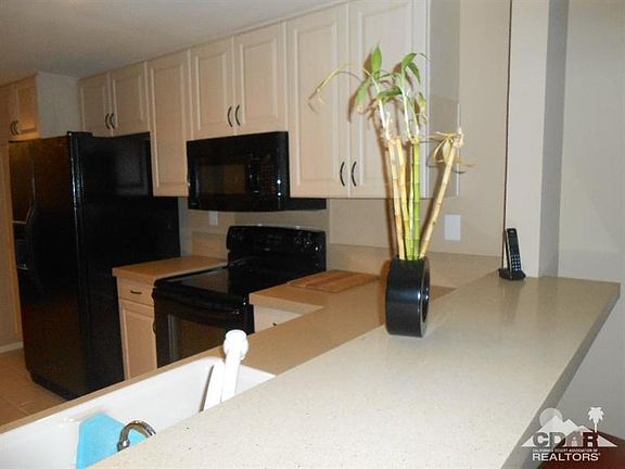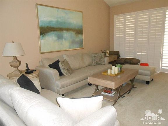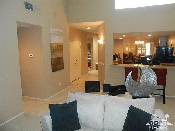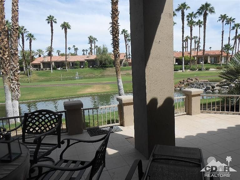 This wonderful Palm Plan (1549 Sq. Ft.) is upgraded and ready for you, just bring your personal items. If you love outdoor living, this spot is for you. Both the courtyard patio and water-view patio have been enlarged and tiled. Large built-in BBQ in the courtyard for the grill-master and a beautiful Southern exposure with a lake view on the fairway patio. The kitchen has been up-dated with newer appliances, cabinetry and designer counters. Nicely furnished. Situated on a desirable cul-de-sac with tremendous waterway views, you'll love the privacy and location. Palm Valley is one of the desert's premiere resort communities with two 18 hole golf courses, active tennis & athletic programs, outstanding health club & spa, a full calendar of fun and interesting amenities & activities. No minimums, initiation fee or assessments here. Come join the FUN!