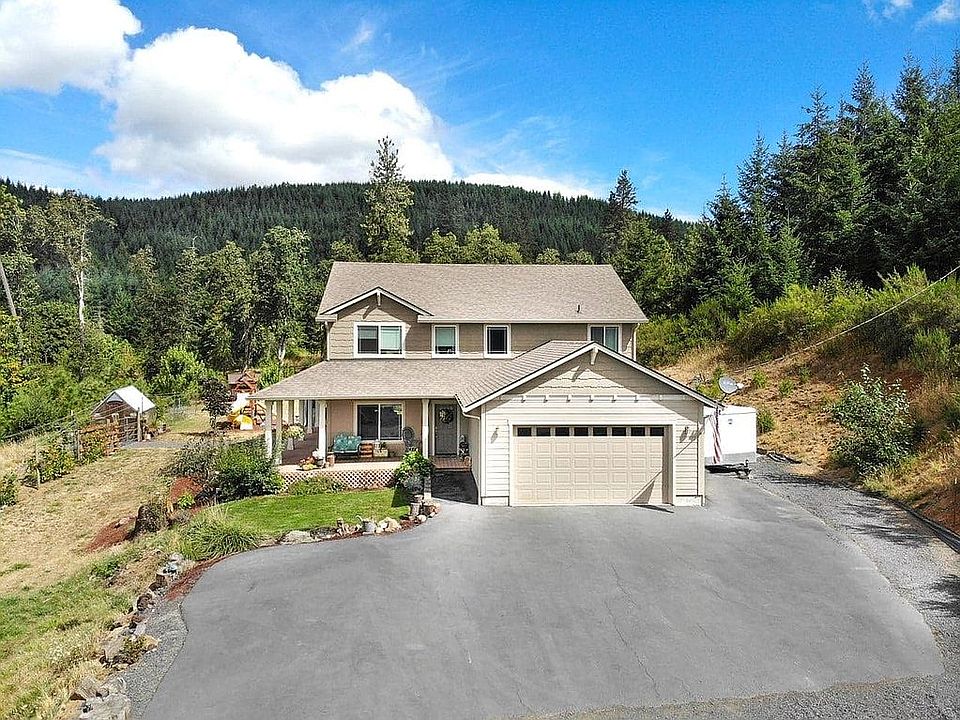 Enjoy amazing views and wildlife from the wrap around deck of this great country home. Private timberland boarders the back of this 8.15 acre hilltop property, very private. Granite kitchen counters, walk-in pantry and a large island. Master bedroom is on main floor w/walk-in closet. Family room and 3 additional bedrooms are upstairs. Easy commute access to I-5.