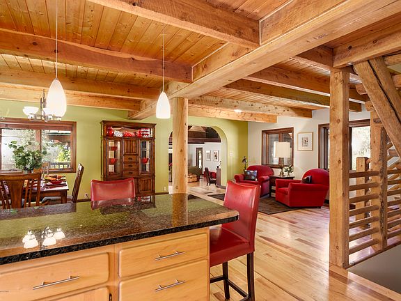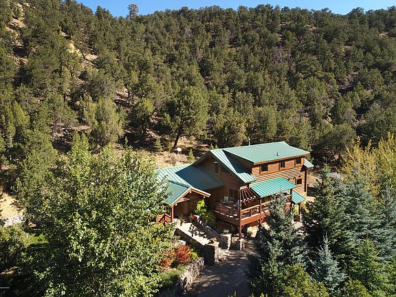 Nestled among the evergreens is a treasured log home on over 7 acres located between Carbondale and Glenwood Springs. With an magnificent living area, multiple decks with pond views, three bedrooms plus a bonus room, the home is cozy for one or a party with all the friends. Meticulously maintained and thoughtfully updated this home is move-in ready! Fisher Creek runs through the property providing easy access to nature trails. Ample of storage, a fenced in garden, and privacy add to the appeal of this gorgeous home. Easy and fast 10-minute drive to Highway 82.