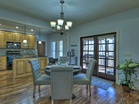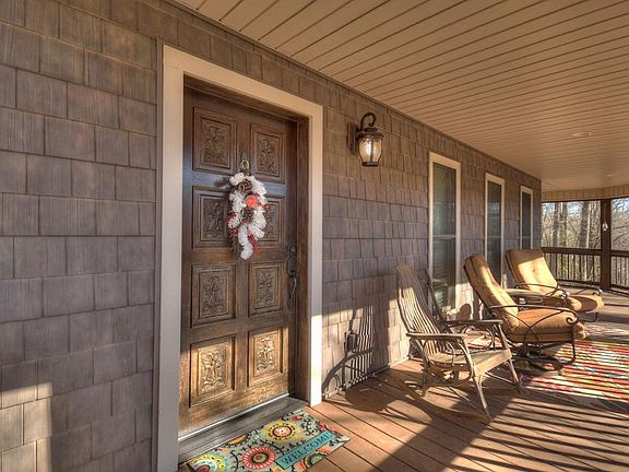 Charming Craftsman home is nestled on gentle, wooded tract in quaint and quiet area off scenic paved road & just minutes from historic downtown Blue Ridge, Lake BR, and Toccoa River... three spacious bedrooms & 2.5 baths, master on main features ensuite bath w/ large tile shower, double vanity & walk in closet, lots of storage throughout, chef's kitchen boasts custom cabinetry with plentiful counters & island, newer appliances & custom glass backsplash alongside roomy dining area, family room features cozy gas log fireplace, plentiful windows & spills onto wrap around screened rocking chair porch complete with hot tub, inviting foyer, light & airy interior with a rustic flair, second level features guest rooms and bath, bonus loft room perfect for home office, exercise room, etc & plenty of storage, upscale finishes and fixtures throughout, low maintenance cedar shake exterior, plentiful porches and decks, 2+car garage, easy access with plentiful parking..perfect family home or that much needed getaway in the mountains... plenty of privacy & gentle yard area make this the perfect property! Neighboring poultry farm is being closed down and taken down upon sale.