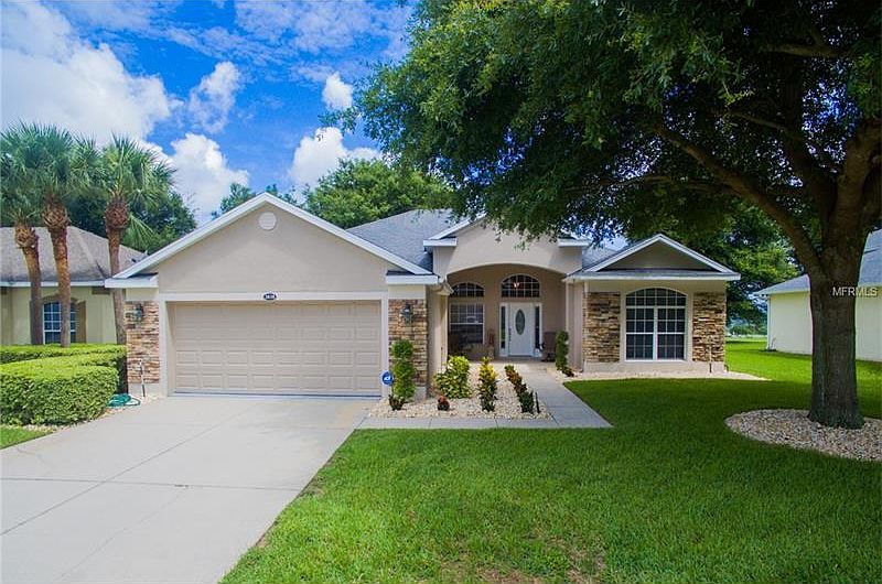 Beautiful Legends home directly on the golf course in one of Clermont's premier golf course communities. With breathtaking views of the 13th fairway and the hills of Clermont, this 4/3 home and its exte4rior stonework provide excellent curb appeal. The split floor plan also features a formal living room and dining room. You will love the kitchen with its stainless appliances, breakfast bar and under cabinet lighting. The kitchen opens to the large family room and dinette area and has access to the covered lanai. This area also has hardwood floors. The large master suite boasts golf course views and access to the covered lanai as well. The master bath has a garden tub with separate shower, double sinks and granite countertop. Two large bedrooms each have their own bathroom. The 4th bedroom may also be used as an office. Legends is a gated community with 24 hr guard, community center, swimming pool, spa, tennis courts, basketball court, fitness center, restaurant, meeting areas, and ballroom, all with beautiful views of Lake Louisa. Located on Hwy 27, it has easy access to Orlando and Disney, shopping and Clermont's highly rated schools. This home is a must see!