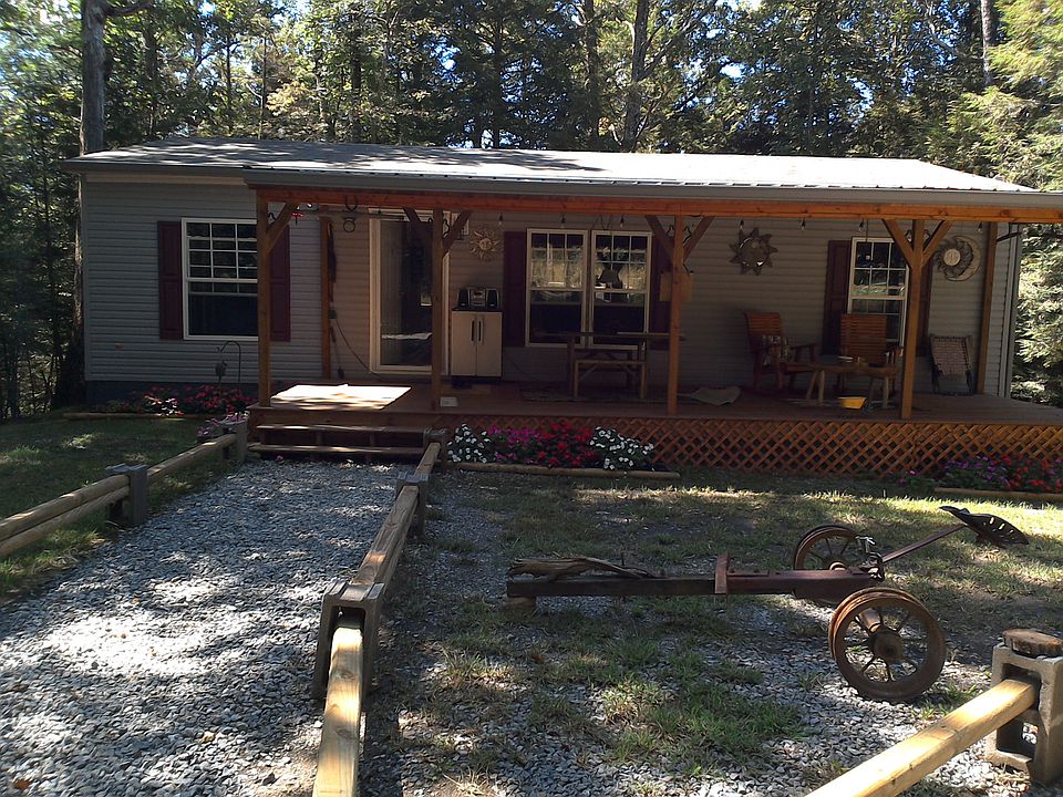 This 3 bedroom, 2 bath home is situated on 5+ acres in such a special setting surrounded by the best of Mother Nature. Property is joined in the back by a creek and is built on a wonderful bluff site. A detached carport for 2 and additional outbuilding is also located on the property. All furnishings, except 2 front porch chairs, can remain with this offering "free of charge". The two covered porches have approximately 400 square feet.