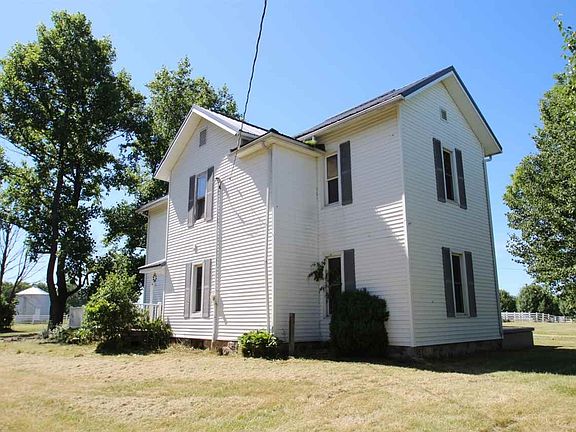 Gorgeous Rural setting! Older 2.0 story home with around 2,004 sq ft of living area, 4 bedrooms, 1.5 baths on 6.30 acres. Updated kitchen and baths. Most windows have been replaced with vinyl thermal pane windows. Newer metal roof. Newer electric water heater in 2017. Newer oil furnace. Updated 5" well with submersible pump & newer pressure tank. Newer pex plumbing and pvc drain lines. Full bath & 1/2 bath were both updated some time ago. Kitchen was also updated at some time with lots of cabinets, electric range top, nice double wall ovens & refrigerator all remain, but "As Is". Newer 32' x 32' pole frame detached garage with a 16' x 28' workshop addition on the rear plumbed for a bath. Older 39' x 79' wood frame barn with a 39' x 40' pole frame addition on the west end. Small grain bin. Lots of nice vinyl fencing. Partial woods with a small pond in the center great for wildlife and part pasture area great for horses or livestock. Bank REPO so no utilities are on and being sold "AS IS" Buyers need to be prequalified for financing prior to offers. WON'T QUALIFY FOR FHA, VA OR USDA.
