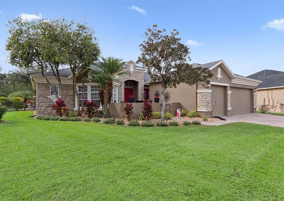 ** SELLER WILL PAY FOR 6 MONTHS OF HOA DUES!! ($700). Must see this magnificent ranch style home in one of Oviedo’s most popular Communities- The Sanctuary! One of the largest, premium lots in the entire community located at the end of a cull-de-sac with peaceful pond views as well as a spectacular view of conservation land hosting an abundance of wildlife. You’ll be welcomed into this 2,574 sq. ft. beauty through your gated 20’x16’ courtyard- an excellent spot to view the sunrise while enjoying your morning coffee. As you walk into the living room with 12ft. ceilings, you’ll enjoy a wonderful view of your backyard. The cozy dining room features Italian ceramic floor and opens to the outside through French doors. The home features an extra large Master Suite including a large sitting room with his and her walk in closets and windows overlooking the pool and backyard as well as glass sliding doors opening to the lanai. Large master bathroom with dual vanities, a spacious separate shower and a luxurious soaking tub. The guest wing features two additional generously sized bedrooms with adjacent and fully equipped bathrooms. An additional bonus room could be used as an office, exercise room or could easily be converted to a 4th bedroom. The kitchen boasts 42” cabinets, Corian countertops, a large closet pantry, breakfast bar and a large eat in nook. The kitchen opens to the light and bright family room with sliders exiting to the covered lanai. Sit on your porch and enjoy a cold libation while you listen to the birds sing and you might be visited by a family of deer. Your backyard consists of a large outdoor patio, a 10,000 sq. ft. salt water pool, a stand alone hot tub, a professionally landscaped yard as well as your own 350 sq. ft. putting green. The yard is completely fenced in- all yours to enjoy privately or with a crowd. The home is additionally equipped with hurricane shutters and child protection fencing to surround the pool for your extra safety. This community boasts all A+ schools and is sure to please a crowd, being close to major highways, UCF, lots of shopping and delicious restaurants. Conveniently located in a fabulous community with an oversized swimming pool, splash pad, fitness center, basketball courts and pickleball. See this beautiful, move-in ready, model home & enjoy Florida style living at its best! Please note the seller is willing to add a closet to the office/fourth bedroom prior to closing.