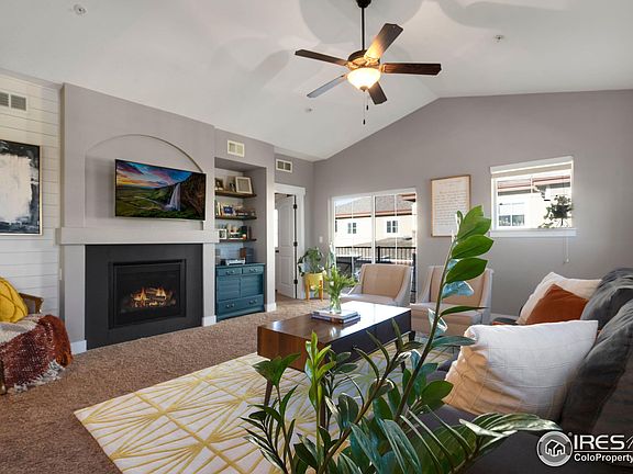 Gorgeous condo with luxurious finishes lifted from the pages of West Elm! Stylish, customized spaces throughout. Cozy up in the living room after spending the afternoon at the pool. Custom shiplap, vaulted ceiling, fan, built-ins, and the PERFECT place to curl up with a good book by the fire. Soaring ceilings, wraparound corner windows, and sun-splashed spaces make this home truly special. Large kitchen with stainless steel appliances, vent hood, vaulted ceilings, and bar dining. Large dining room and wide hallways. Serene Owner's Retreat with high ceilings, fan, balcony access, and private luxury bath. Spa-like 5-piece luxury complete with dual vanities, oversized tile shower, walk-in closet, and deep soaking tub. Sip your morning coffee on the private, covered balcony. Large secondary bedroom and bath, full laundry room with storage, roomy foyer with additional storage space and direct garage access, and covered entryway for guests. Outside you'll find manicured grounds, HUGE green space, and a fantastic private pool complex - the perfect place to spend your summer evenings! Close to Twin Silos Park, trails, hiking, watersports, shopping, dining, and entertainment - all feeding into the coveted Southeast corridor Poudre Schools. Schedule your private tour today and make your next move your best move!