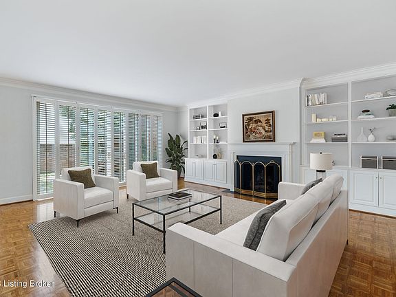 Charming St. Mathews townhouse. This spacious townhouse offers 2 large bedrooms and 3 1/2 bathrooms. The fully renovated kitchen has custom white cabinets and solid surface countertops. The gleaming parquet floors throughout the main living area add to the classic charm of this beautiful home. The living room has a fireplace flanked by custom shelving and an adorable built-in wet bar. The wall of sliding glass doors leads to the private brick courtyard. The plantation shutters add to the designer decor of the living room and dining room as well as added privacy. The cheery powder bath completes the main living area. The dining room can be easily converted to a first floor primary. Upstairs you will find a very large primary bedroom and bath. The primary bedroom has an abundance of closet space, hardwood floors and a separate dressing area. The second bedroom also has an en suite bathroom and plenty of natural light. The finished basement has another full bath, laundry room and storage. This charming townhouse is located on Washington Square, convenient to parks, restaurants, shopping and the heart of St. Mathews.
