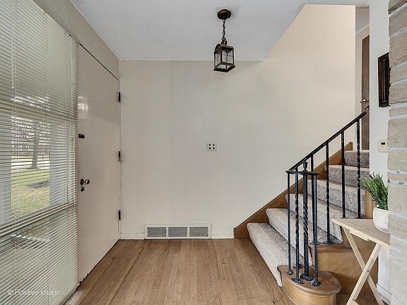 This home has perfect blend of mid-century modern touches and charm! Enjoy walking distance to downtown Western Springs with the train, shops and restaurants as well as schools, the library and Bemis Woods Forest Preserve! The covered front porch protects the entrance from the elements and opens to a nice sized foyer with hardwood flooring, an oversized sidelight window and a wood staircase. The foyer opens to the living room and dining room combination that has a 2 sided-fireplace, a huge paned window over-looking the front yard and there is hardwood flooring under the carpeting. The north wall has high windows that offer light, yet privacy. The eat-in kitchen is a nice size and has a side-door to the driveway making bringing in groceries a breeze and the 2 car gaarge is only steps away! From the kitchen sink there is a nice view of the backyard and patio. There lower level is a perfect hang-out, rec room, work-out area, home office, or play room for kids. It has newer wood like flooring and a good looking wood bar perfect for watching March madness or football games. There's also a laundry room / mudroom area with access to the backyard and a powder room. The mechanicals are in good shape. Upstairs there a 3 good sized bedrooms, a full bathroom, a "finished" attic space and plenty of storage nooks. The large primary has exposed hardwood flooring, 3 closets and access to the bonus room that is up a few steps. This versatile area can be used as storage, an office or even a walk-in closet. The other bedrooms have nice closet space and hardwood flooring under the carpeting in the bedrooms and living & dining room. Bring this house up-to-date for a sound investment and enjoy all the Village of Western Springs has to offer!