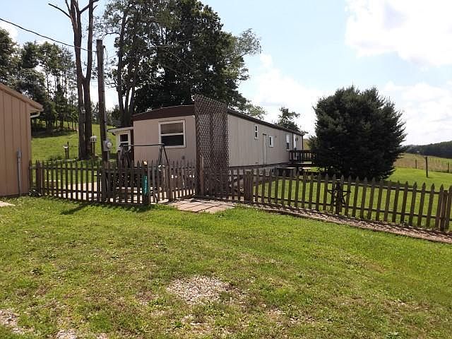 Trailer could have 2 bedrooms, owner took wall out to make living room larger. Enclosed porch added on (10' x 22)'. Concrete patio, fenced yard, garden, shed and 2-car garage (24' x 21') built in 2006. All appliances included. Property being sold from estate and owner's never lived there.