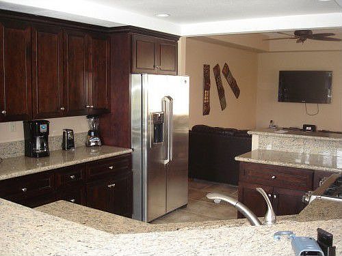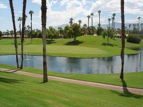 (*Open Sat 1-3pm*) Townhouse-style condo: 3bd/3ba spacious 1700sqft boasts extraordinary views of lakes, mountains, & elevated views on the 15th green. Rarely on the market, all 3 bedrooms upstairs affords full luxury living space downstairs. Seller owns a design center. Custom wrought iron upgrades & designer furnishings included. Stained concrete floor, recessed lighting, custom corner wood-burning fireplace, arched doorways. Interior laundry. Direct garage access. Wide single-loaded street. Prestigious Palm Valley offers 36 holes of golf (no initiation fee), 16 tennis courts, famous Day Spa, large fitness center, mens -ladies, -kids social clubs, and 2 restaurants. Click Virtual Media to see video.