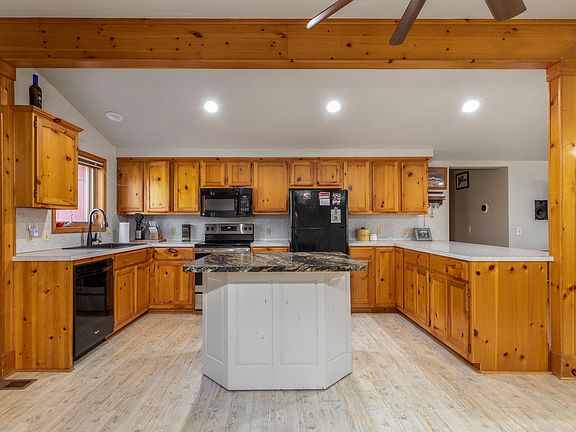 This peaceful setting has so much to offer! Five secluded acres located on end of paved road. Home is surrounded by trees and seasonal waterviews of Grand River, making this setting a haven for nature. This home offers 3 bed/2 bth with open living, kitchen and dining area. Huge primary suite with large walk-in closet and private bath. You will feel like you are in a tree house when you walk out from master to your wrap around covered porch. The detached workshop/4 car garage offers so many possibilities. Fenced area would be great play area or dog run. Beautiful surroundings and just minutes from town amenities.