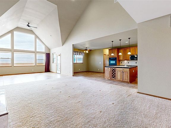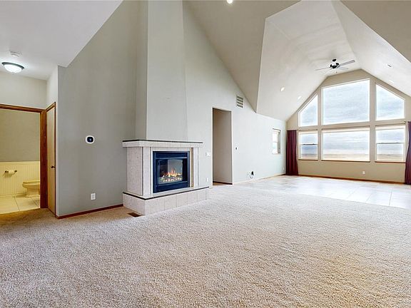 - Description: Stunning Open Concept Living Room With Vaulted Ceilings & Fan & Fireplace. Windows, Windows And Move Window Walk Out To The Entertainment Deck To Watch The Sunrise.