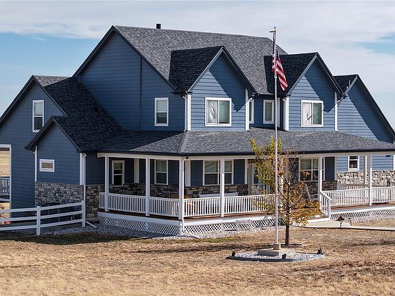 When Elegance meets Country! When you first arrive home to your wrap around fully covered front porch, just waiting for your rocking chairs to watch the magnificent sunsets. Enter your home to a beautiful tiled welcoming foyer, to your left you will find your executive level office and ½ bath. As you proceed into the living room with radiant floors through the entire home with a Buderus Heating system including the garage floor which it is wired for, the living room has vaulted ceiling and a fireplace to set the tone and is open concept to the kitchen which is a Chef’s dream with a 5’ x 5’ center island, hickory cabinets and a prep sink. There is also a large space for the biggest of kitchen tables. As expected , one must have a formal dining room in a home this elegant with hardwood floors and Hunter Douglas blinds. Do you crave peaceful sunrises? Off the living room is a covered, private deck to overlook the 120 acres of dedicated open space to the east that extends from your 4.1 acres of horse property or even better bring your big toys home as they are welcome here. No more RV in the storage lot, bring it home where it belongs.