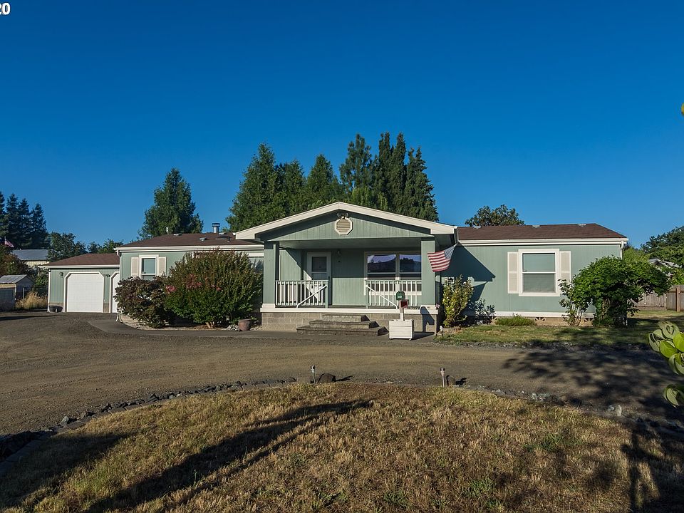Tucked away from traffic at the end of a private road. Circular driveway & covered patio welcomes you to this well maintained home. Great floor plan w/separate LIV/FAM Rooms, gas insert FP, lg kitchen w/breakfast bar & pantry, mud-room, split Master suite. Large fenced backyard w/covered deck offers an oasis w/nice foliage, raised beds & shade trees. Extra lg detached 2 car garage w/added storage room for hobbies/small shop. RV parking. Covered ramp for accessibility. 1yr Home Warranty included.