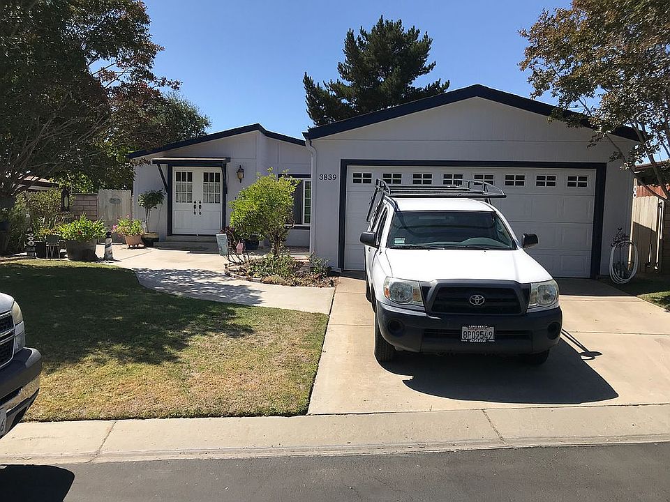 mobile home with garage. home set down to appear as normal. Not raised with skirting. Land is owned. Lot size is approximately 4200 sq.ft.