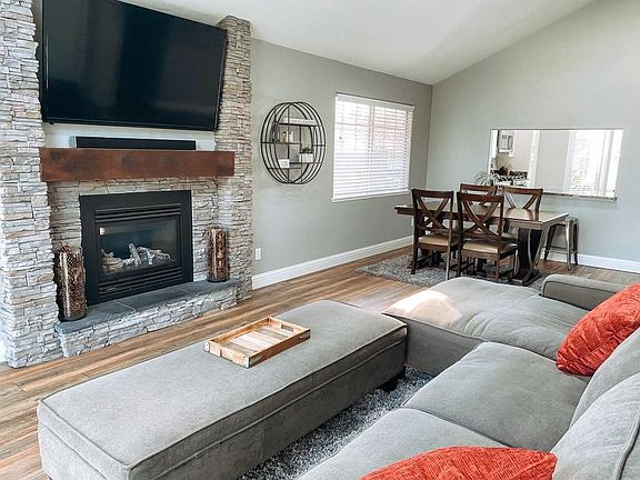 Beautiful home that has been delightfully remodeled with a great floor plan with vaulted ceilings in the great room with skylights. The kitchen has new cabinets, appliances, and granite counters. The living room boasts a stunning fireplace and mantle that is surrounded with stacked rock. Both bathrooms were completely redone with a gorgeous subway tile design. The backyard has a new lawn and stamped and stained concrete with a covered area for entertaining and BBQ'n. Rear and side yards have new fencing with fresh stain.
