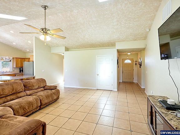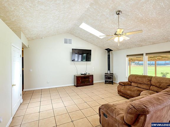 Quiet, country acreage close to town. 1.51 acres of flat, usable land. Newer 60 x 36 shop w/electrical & lighting. Well-maintained home with open floor plan. Spacious, vaulted living room with skylights & slider to large, covered patio. Stainless steel appliances, oak cabinets & eating bar in kitchen. Primary bath updated with quartz & large, walk-in shower. Slider from primary bdrm to cvrd patio. Bonus room could be family rm, play rm, office or converted to 4th bedroom. Utility room w/sink. Newer roof.