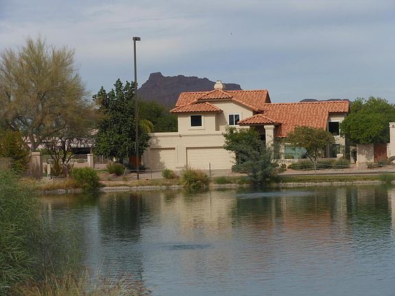 This is the home you have waited for! A rare find in NE Mesa, overlooking golf green & pond on Red Mtn Ranch Golf Course. This gorgeous home features kitchen w/ center island, open to great room & updated w/ diagonal-set 20'''' tile, upgraded cabinetry, SS appliances, quality Corian counters & tile backsplash. Abundant windows in kitchen, great room & master BR showcase the awesome views. Sliding glass door from great room opens to covered patio + extended patio-a great place to entertain & enjoy golf course views. Spacious master suite has exit to patio. Ensuite bath is updated w/ beautiful tiled shower & tub & upgraded double vanity. Large secondary bedrooms; bedroom #2 has double doors off great room & is used as office.HVAC system replaced in 2014. Move in & enjoy this immaculate home!