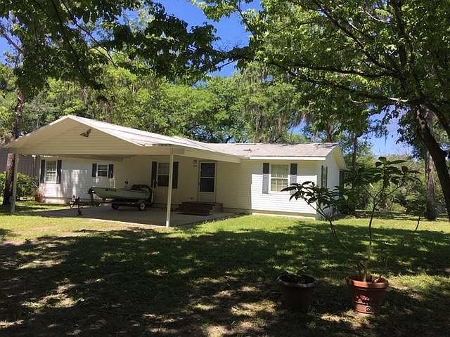 PRICE REDUCED (From $249,900)--Well-kept turn-key-ready Modular-blt. 3BR/2BA split-plan home for sale, along the majestic Suwannee River, at "high & dry" Rock Bluff-area of Gilchrist Co. The 0.53-acre tract has 100' of frontage along waterfront, w/ great views from the river-deck/screened-porch at the home, and then deck/staircase down to the river. Inside is very spacious, w/ large living/dining combo room (accesses to the back porch/deck), full Kitchen w/ eat-in-area, large Main BR/BA suite (dual sinks/garden tub/separate shower in BA) and lots more. Property also has storage outbuildings, double-wide front att. carport; all nearby to Co.-public-park w/ river-boat-ramp, general-store/restaurant, fishing--call/email today for all details!!