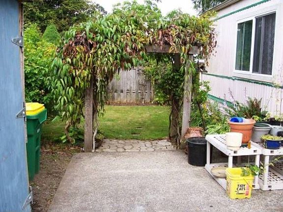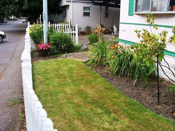 This 64 foot single wide is surrounded by beautifully maintained gardens, mature plants and trees, beautiful lawns and a large covered patio and a large deck. The roof is a metal roof designed for longevity. Most of the windows are vinyl double pane or storm windows. The oven, refrigerator and washer and dryer are newer. The kitchen is large and has a pantry and kitchen table area. The furnace works well and the duct work was cleaned and sealed to avoid heat leakage. This home has 2 bedrooms and 2 baths. The master bath has a large soaking tub. The linoleum throughout the house is newer. For more info call Chris @ 971-506-0570!?
