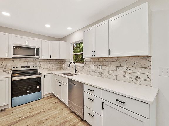 Wow - This is a Show Stopper - Move in ready 3 bedroom 2 1/2 bath! Totally remodeled home most everything is New: Roof, Gutters, Siding, Windows, Appliances, Cabinets, Bathrooms, Flooring, Countertops, Light Fixtures, Front Door, Siding, Garage Doors with the My Q App, Railings, Paint inside/outside and so much more. This won't last long!!