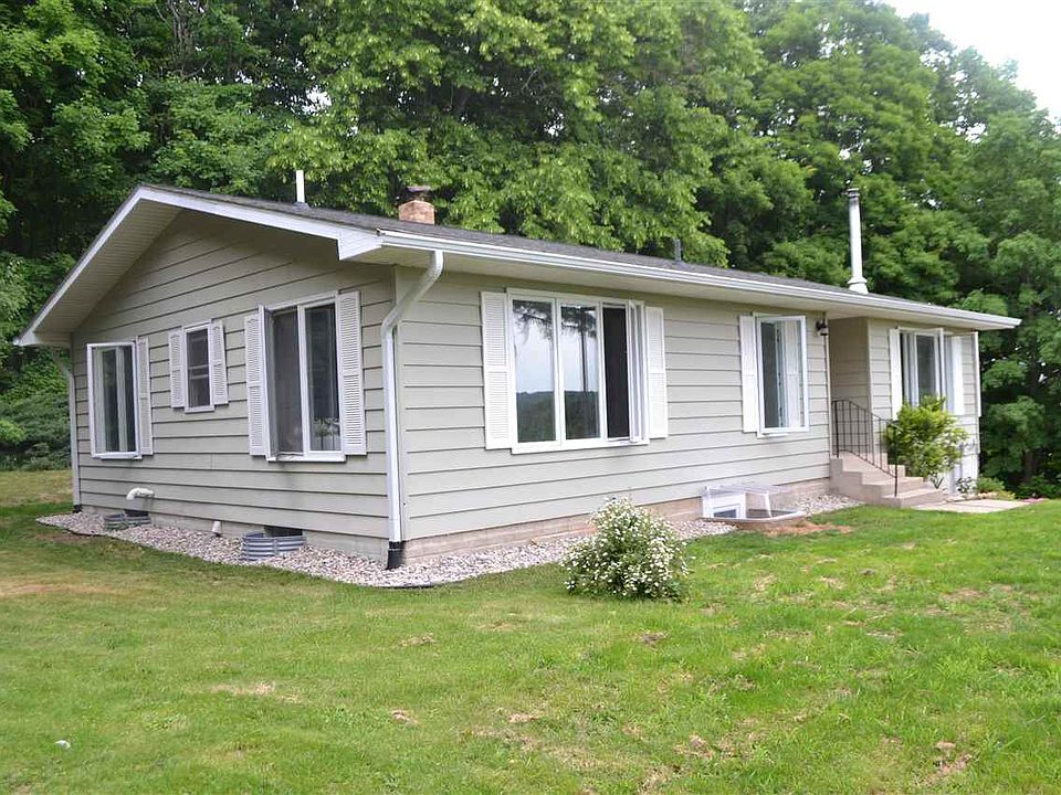 This three bedroom two bath ranch style home sitting on 10.79 acres is in great move in condition. Has a spacious open living/dining/kitchen area. with a full walkout lower level. With nice views of the adjacent valley. The newer barn type building offers storage but is currently used as a horse barn with power and water Great seasonal or year round home and setting.