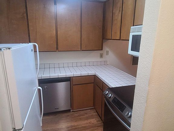 Make yourself at home in this great 1 bedroom condo in Pleasanton. This 2nd floor unit offers 617 Sqft. of living space with 1 bedroom, 1 bathroom, a single car garage and a parking pass. The kitchen comes equipped with tile counter tops, double sinks, refrigerator, microwave and stainless steel appliances including electric range/oven and dishwasher. Flooring consists of wood and carpet throughout. The airy bedroom comes with plenty of closet space and is perfect for getting a good night's sleep. Additional amenities: balcony, washer, dryer, air conditioner, detached garage with small storage area. Owner covers HOA dues. Water & trash included. Tenant responsible for all other utilities. Located just a short walk to downtown Pleasanton where you can enjoy local restaurants, farmer's market, shopping and concerts in the park (summer time only). Easy freeway access to I-580 and I-680. This is the perfect place for you! INFORMATION IS DEEMED RELIABLE, BUT IS NOT GUARANTEED! 1 year lease. Owner covers HOA dues. Water & trash included. Tenant responsible for all utilities. Wilson Property Management application fee: $45 per adult. No pets allowed. No smoking. Security deposit is based on excellent credit and references. An additional deposit may be required from applicants with poor credit and/or references.
