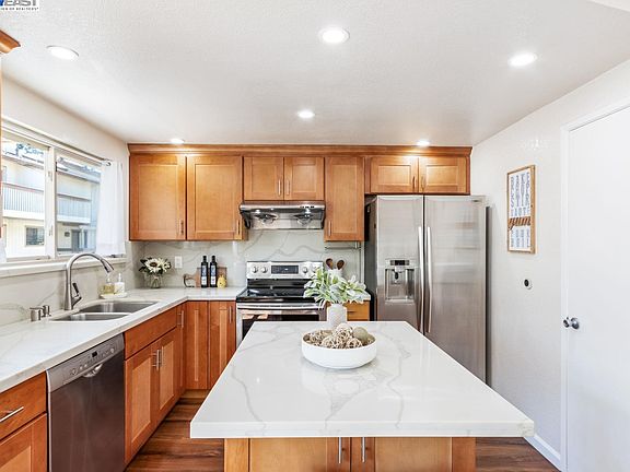 Newly updated Charming Fremont townhome style condo available for rent. Conveniently located with walking distance to BART, Parks, Shopping, short drive ACE/Amtrak stations and Parkmont/Washington Fremont Schools. This home is a 1400 SQ ft has 2 Bedroom, 2 and half Bath. Laundry room with den and two car garage, with WiFi garage opener. Each bedroom has its own attached bath, the master bedroom has vaulted ceiling with skylight, the second bedroom has a large walk-in closet. Updated Granite Quartz counter tops, with soft closing cabinets, New Kitchen Appliances/Washer/Dryer with Luxury Vinyl flooring, Recessed Lighting, Freshly Painted,Updated Bathrooms,One bedroom has walk-in closet. Laminated living, dining and kitchen areas. Laminated floors in bedroom and refinished Bathrooms, with abundantly bright natural light. Thermostat is WiFi capable. WiFi activated belt driven garage door, with Ring security flood light cams monitor for entrance and garage door. 1. Rent $3300/-per month - lease is for minimum of 6 months and above. 2. Security deposit $3300/- 3. Renter responsible for electricity, gas and utilities. Landlord pays for Water/Garbage. 4. No Pet, No sublease, No smoking 5. Renter provide access to yard for maintenance and other repair as needed. 6. All occupants/renter's shall be listed on the application and the lease. 7. Payment is due on the 1st of every month and a late charge of $100 shall be applicable after 5 calendar days. 8.Renter shall abide by all Mowry Gardens HOA CC&R's, Bylaws and other rules and regulations and be liable for any fines or charges levied due to violations. 9.Minimum FICO credit score : 700+ 10. Renters Insurance required. 11. Required 2 months Pay Stubs, No sub-leases please. 12. Background Check Required 13. More details in the Rental Agreement 14.Available for viewing from Oct 15,2024.