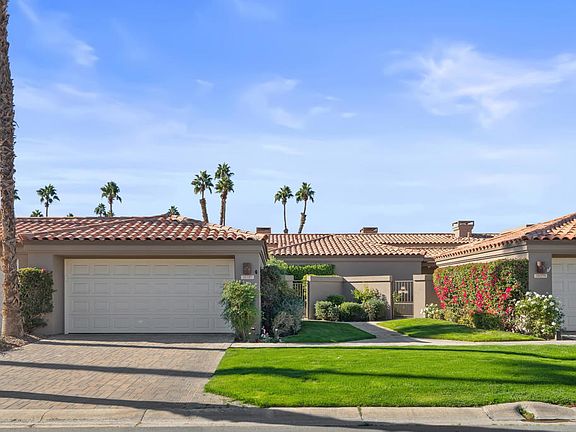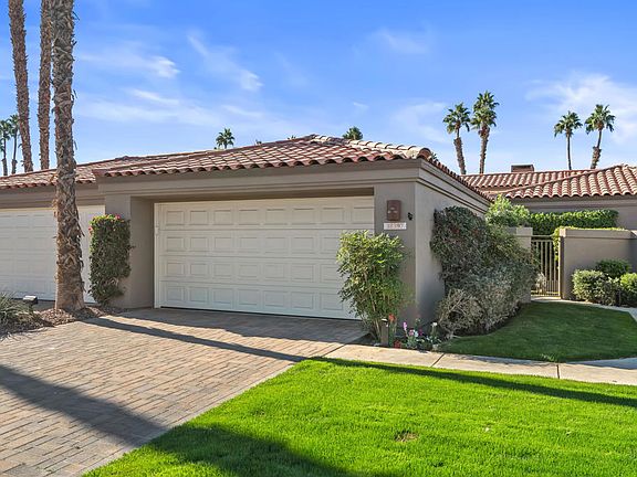 PRICE REDUCTION! Experience country club living at its finest. Stepping through newly installed French doors into a bright, modern kitchen, the soothing sounds of a nearby pond transport you to a life of luxury and relaxation. This stunning Jacaranda model is perfectly positioned on the 7th hole of the Challenge Course, offering breathtaking western mountain views framed by the lush golf course and a cascading waterfall. Each bedroom features custom-built wall units by California Closets, designed to enhance both style and functionality, with expanded closet systems for optimal storage. The home boasts upgraded and remodeled bathrooms, new windows and sliders, newer HVAC and water heater, Ecobee smart thermostat, hot water circulator, cold water filtration system, and even a Split-Air system in the garage. Exterior upgrades include driveway pavers, an extended patio, and more--the improvements are endless! With a full range of club amenities, including pickleball, swimming, and championship golf, every day feels like a vacation. Embrace ''the good life'' in this exceptional home! SHORT-TERM RENTALS allowed!