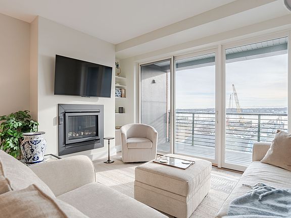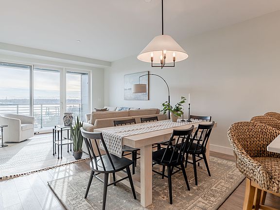 Beautifully furnished condo in Hobson's Landing offers stunning water views in. Located on Portland Peninsula in Maine, it features a private deck, a gas fireplace, hardwood floors, customized closets, and garage parking. Residents can enjoy first-class amenities, including a concierge service, a club room, a fitness center, a work/study area, a reservable guest suite, a dog wash (allowing up to 2 pets), and bike storage.