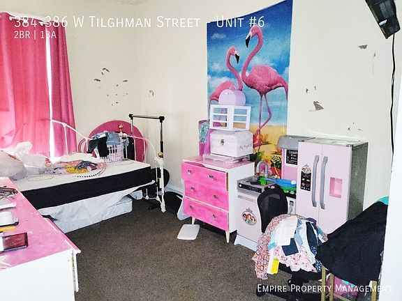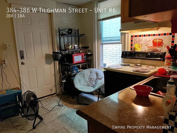 This is a 2 bedroom, 1.0 bathroom, apartment home. This home is located at 384-386 Tilghman St UNIT 6, Allentown, PA 18102.
