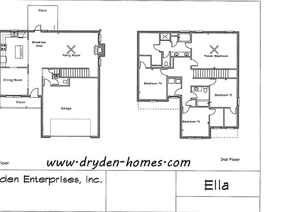 Two story Ella plan by Dryden Enterprises! Plan features an open concept downstairs with formal dining room & large family room! Fully equipped kitchen with island & stainless appliances & clear view to family room. Upstairs, master suite features vaulted ceilings, large walk-in closet! Spacious master bath has dual vanities with separate tub & shower. Fenced backyard!