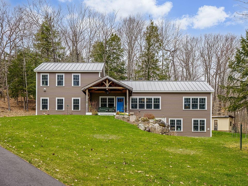 384 Allen Rd beckons those who seek the tranquility of nature and the comfort and amenities of intelligent, modern construction. 9' ceilings over gleaming hardwood floors radiate natural light to every corner of the home-positioned directly due south for optimal solar exposure! The brilliance of this design begins at the kitchen, a masterpiece crafted by designer Gordon R. Merrick- Maple cabinetry with burl wood inlaid door fronts, surfaced with an elegant black granite countertop, embellished with mineral flecks. Stainless steel appliances, LP cooktop and hood vent against mosaic tile backsplash, center island with seating and an abundance of storage, large walk-in pantry, and Bosch wall oven. Seamlessly integrated with the living room and dining area-this space invites gatherings and creates a delightful environment to enjoy the company of family and friends. The first-floor owner's suite with bath and dual walk-in closets provides a retreat, while a cozy 4-season post and beam sunroom with polished concrete floors and a Regency wood burning stove invites relaxation as you gaze out the windows to the woods and the forest wildlife. First floor laundry room with built-in cabinetry, utility sink and coat closet. Upstairs, offers privacy and two additional, large bedrooms, full bathroom, and a flexible space ideal for an office. The basement is partially finished - daylight, walkout, with a pellet stove, and a heat pump for cooling or optional heating; easily transformed into an in-law suite. Enjoy relaxing on the post and beam front porch overlooking the expertly groomed, extensive perennial gardens, frequented by butterflies and hummingbirds amidst landscaped walls and walkways. Highly insulated structure with 10-inch walls, Kohler whole house generator, air exchange system, standing seam metal roof, newly constructed driveway, water softener, heat-pump water heater. Located 2.5 mi from Pineland Farms and Bradbury Mountain trailhead, 8 mi to Freeport.