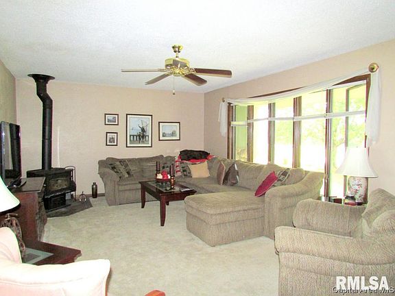 This ranch home sitting on over an acre is spacious with tons of storage! Newer roof, plus kitchen appliances, counters & hardwood floors. Practical floor plan offers large living room, big eat-in kitchen with sliding door access to huge backyard backing to field. All bedrooms are generous with abundant closet space too! Partial basement offers rec or family room, even more storage and potential for over 1000 more SQFT of living space. You will enjoy sitting back from the road in a country like setting in Pleasant Plains schools, but just seconds outside of Springfield.