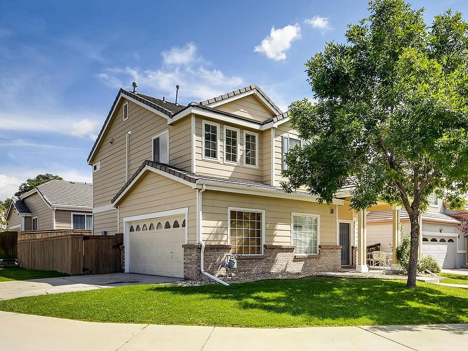 Beautiful two-story house in Summerhill available now! This perfectly located home in Aurora greets you with a large charming front porch! Bright, open living space perfect for entertaining. Entry living room features dramatic cathedral ceiling. Family room opens to dining and spacious open kitchen. Abundant cabinet space and pantry. Immaculate clean. Laminate wood floors and tiled flooring throughout the main floor and stairs. Second story boasts brand new carpet in all four bedrooms. Spacious master suite w/ master full bath and walk-in closet. Windows flood every room with natural light in this perfectly located corner lot. Serviced and certified furnace, central air. Low maintenance backyard with sprinkler system. Worry free concrete tile roofing! Over-sized side loading two-car garage, finished and room for storage! Great curb appeal on a quiet street. Conveniently located by the Highland canal trail, shopping and dining, light rail, hospitals, highways and DIA. Do not miss it!