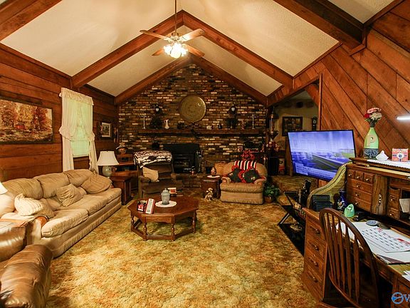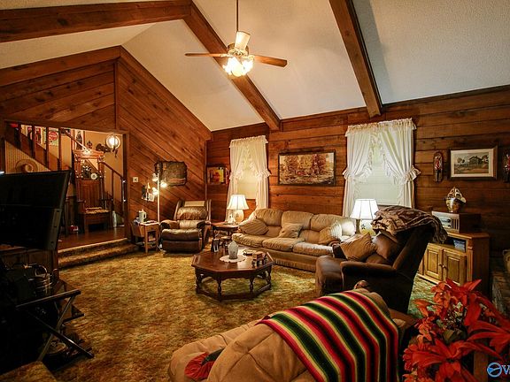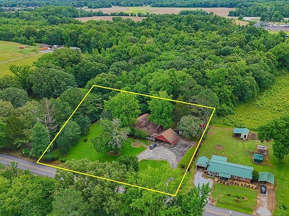 Nice 4-bed, 2-bath home in Yarbrough Subdivision! This spacious 2-story home features rustic wood walls, a welcoming foyer, and a cozy living room with gas log fireplace and wood beams. The kitchen offers ample cabinetry and appliances, with a separate dining room featuring rustic accent walls. Primary bedroom includes his & her walk-in closets. Upstairs features a 4th bedroom with walk-in closet, sitting area, and full bath. Enjoy a large covered front porch, 2-car attached carport with overhead storage, circular concrete drive, multiple storage buildings, and mature trees. Conveniently located minutes from schools, shopping, and dining!