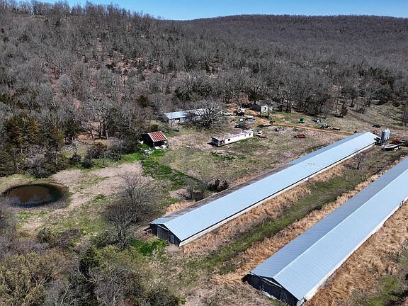 Business Opportunity! 92+ acres m/l with 3 up to date Turkey houses in really good condition. New insulation and side boards and ready to get under a poultry contract. Some pasture, mostly trees plus land is loaded with deer and turkey. Lots of building sites to build a new home. Propane tank is owned and will convey plus there are two working wells.