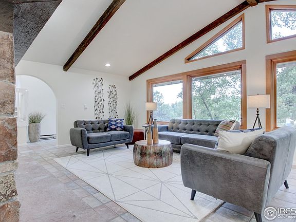Spectacular and unobstructed views in the heights of Boulder. Newly updated home sits on ~5 acres of meadow surrounded by mature pine trees and granite rock outcroppings. Escape to the master suite with 1 of 2 decks that over look the city lights or enjoy the warmth of the fireplace or the silence of the reading nook. Welcoming vaulted ceilings with floor to ceiling windows and beautiful fireplace in lvng room. Lower level has Lndry, full bath, and 3 bdrms or convert 1 into office. 2 Solar Sys