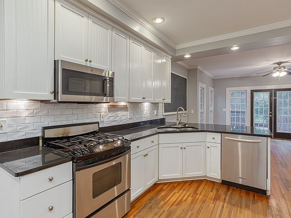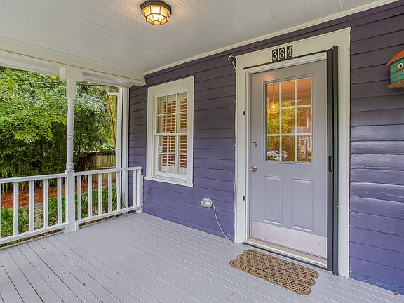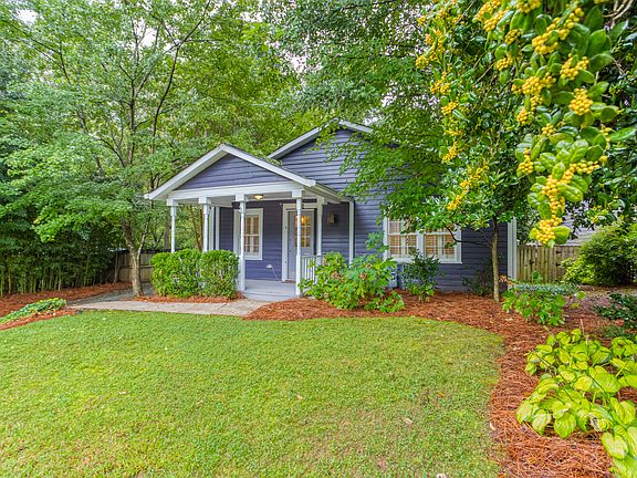 Charming Bungalow in Loring Heights. Walk up to a rocking chair front porch. Freshly painted interior. Beautiful hardwood floors throughout, open kitchen with stone countertops, tile backsplash, stainless steel appliances, and breakfast bar. Family room off the kitchen features a brick accent wall and wood burning fireplace. French doors lead to a large deck and fenced-in backyard, great for entertaining. Full guest bedroom on main with additional guest room or office. Master suite upstairs includes a walk-in closet and master bath with dual vanities and soaking tub/shower. Ideal location with easy access to Buckhead and Midtown.