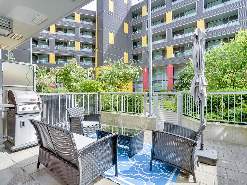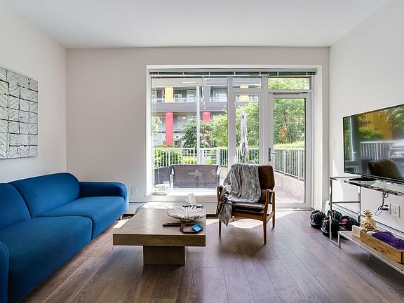 Address: 204-384 East 1st Ave, Vancouver 1 Bedroom, 1 Bathroom, 350 sqft Patio Finished area: 625 sq ft 1 secure underground parking and insuite storage Welcome to CANVAS, where style and convenience meet! This pet-friendly 625 sq. ft. suite on the 2nd floor boasts a stunning open layout, perfect for modern living. SUITE: This home features a massive private patio, facing the quiet inner courtyard, offering an outdoor oasis ideal for entertaining or relaxing (with a locking gate for added security). Inside, you'll find contemporary laminate wide plank flooring, complemented by sleek, smooth kitchen cabinets and frosted sliding glass walls that create a unique bedroom partition. The kitchen includes a premium KitchenAid stainless steel appliance package with a fridge, stove, dishwasher, and microwave. Quartz countertops complete this thoughtfully designed space. There is plenty of insuite storage, including 2 large closets. The spa-inspired bathroom features a deep soaker tub, perfect for unwinding after a long day. Residents of CANVAS enjoy access to a fully equipped gym, a serene shared garden and one parking stall for added convenience. This pet-friendly, smoke-free home perfectly balances style, comfort, and practicality. LOCATION: Mount Pleasant is a vibrant and well-connected Vancouver neighbourhood, offering easy access to Emily Carr University and Vancouver Community College. Enjoy nearby parks like China Creek North and Dude Chilling Park for outdoor relaxation. The area is a transit hub with SkyTrain stations at VCC Clark and Main Street Science World, ensuring seamless travel. Explore a lively dining and shopping scene with diverse restaurants, unique shops, and craft breweries like Main Street Brewing, Brassneck Brewery, and Red Truck Beer Company. This dynamic community blends urban convenience with a welcoming neighbourhood feel. Seva Roberts PREC* | Remax Crest Realty