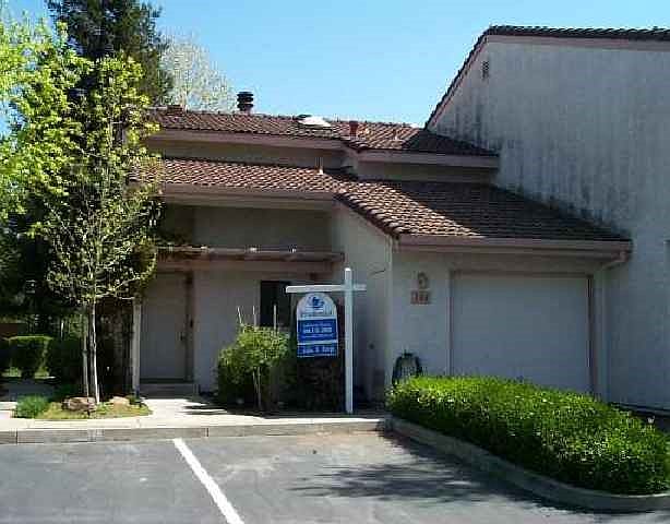 Darling unit (end) close to pool and spa. Updated powder bath. Extra storage upstairs, upstairs bath with additional sink and dressing area. Pergo floors, carpeting and tile in bath upstairs. Gas stone and attached garage.