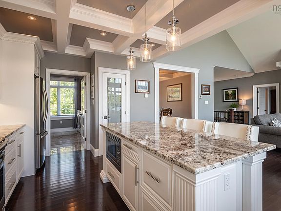 Your dream waterfront lifestyle awaits with this stunning home set on the shores of Fraser's Lake overlooking the 3000-acre Blue Mountain Wilderness area, ensuring a protected view for years to come. The paved drive winds past blooming flower gardens and lush lawns to the grand front porch that provides the perfect welcome to this exquisite residence. Step inside to discover 3,010 sqft of space illuminated by an abundance of natural light and accented by high-end finishes such as hardwood floors and crown moldings. The entry hall invites you to flow into the living room with its wall of windows, cozy fireplace and a sky-high ceiling that soars overhead. You can move seamlessly into the kitchen where the home chef is treated to a suite of quality appliances, stone countertops and a large island where friends can gather as you entertain in style. A formal dining room with a gorgeous tray ceiling is ready for those intimate gatherings or you can dine alfresco on the large deck or by the water. The primary suite is located on the main floor, complete with a walk-in closet, luxe ensuite and a fireplace for an inviting ambience. Three guest bedrooms are housed downstairs along with a full bath, office and a recreation room with a large bar that opens out to your patio. Here, a hot tub offers complete relaxation after a day spent out on the lake. A main-floor laundry and server's pantry, plus a half bath and an attached triple garage complete the layout of this palatial abode. A detached double garage/workshop is also set beautifully on the lot with so many possibilities. Your new lakeside hideaway is peaceful and private with a sprawling 2.3 acres of land and 172 feet of lakefront that is fully developed with a gorgeous deck and dock system, private boat launch, and a bunkie ready for the boating enthusiast. Best of all, this incredible property is located only 10 minutes from HRM, Exit 5 and the amenities of Bayer's Lake. 2021-08-13