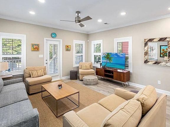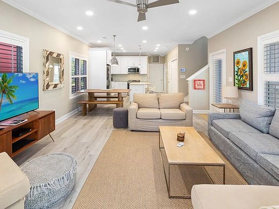 This charming beach home, which was fully renovated just 3 years ago, is the perfect vacation rental investment or full-time home. An open floor plan greets you as you walk in with a beautiful kitchen, all new appliances, flooring and tile work. There is 1 bedroom located on the first floor along with a full bath. There is an abundance of natural light as well throughout the home! There are 3 additional bedrooms located on the second floor including the Master bedroom. Enjoy 247 square feet of porch space to soak up the Gulf breeze as well as a nice size backyard with golf cart size garage at the rear of the home. Old Florida Village has 2 pools, is located 400 yds to 2 beach accesses with public restrooms, and a short distance to numerous shops and restaurants located at Gulf Place.