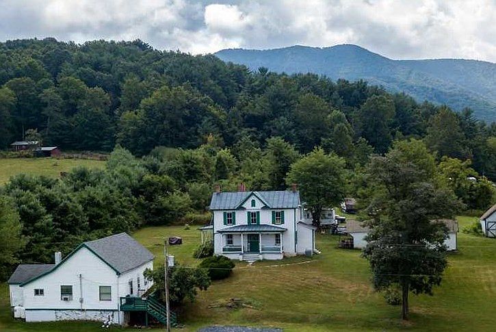 Spacious Farm house with additional guest house on nearly 18 acres with Lake! The main house is c.1895 with original pine wood floors which have been refinished, brick fireplace, full bath and bedroom on entry level, and central AC. Front and side covered porches offer mountain views and multiple outbuildings including garage for storage and workshop. Guest house has 2 bedrooms and one bath. Property includes a large portion of Lake Morningstar for boating and fishing!