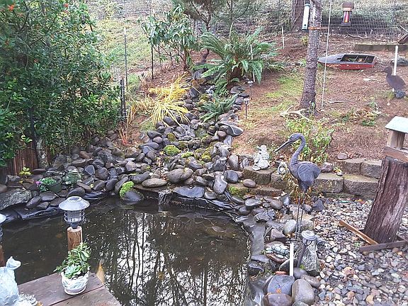 This is the most calming, serene setting in the community. This home is a very spacious home with trey ceilings, wonderful kitchen and dining room, a craft work center in the utility room and a waterfall koi pond in the backyard.