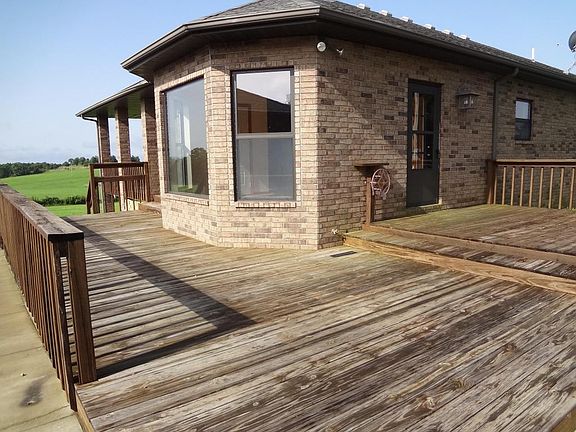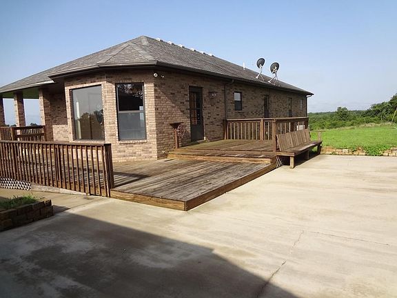 Gorgeous all brick home with three car detached garage/shop setting on nearly 5 acres with a breathtaking mountain view of the Ozark Hills. This home features 3 Bedrooms/2 Baths with nearly 2400 sq. ft. of living space on one level. Large covered front porch to enjoy the mountain view and a large deck out back for bar-b ques and entertaining. Detached 3 car garage has a covered area in back with a concrete pad for additional storage and the yard surrounding the home is level. A lovely home that embodies country living at it's best. Just a few short minutes from the Taney County seat of Forsyth for shopping and services. Sq. ft. and room dimensions are approx