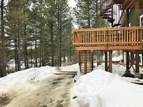 Beautiful home with lake view, full private mother-in-law suite and greenbelt to the corner, tucked in the trees provides privacy and views. This home is unique as it is built with 3 bedrooms each with their separate ensuites and private living rooms each with fireplaces and decks. Yes, this was built almost as a bed and breakfast with a shared dining room and kitchen. Two Masters on the main level off the dining and kitchen area and extra wide hallways which allow for wheelchair accessibility. The Wide sweeping stairs lead to the upstairs bedroom again with the same, although, this one is tucked in the trees with a bit larger deck. Now, you can rearrange your furniture to make one of the living rooms a family room for the kids or more bedrooms etc, but this is really beautifully designed as is. The downstairs has it's own separate entrance and although we cannot consider this another bedroom, that is what they are currently using as. It has another full kitchen, living room, bedroom and workspace..this is absolutely perfect for a guest getaway, but, beware, your guests may not want to leave. This also has an area to park your RV with an RV evac connect. The backyards is full of flowers in the spring and partially fenced for your four legged friends. Complete with jacuzzi this is virtually maintenance free and easy to lock and go making this a fabulous getaway for you and your family. The lot next door is also available under a sep. MLS for $38,500 Make sure this one is on your list...you won't want to miss seeing this one.