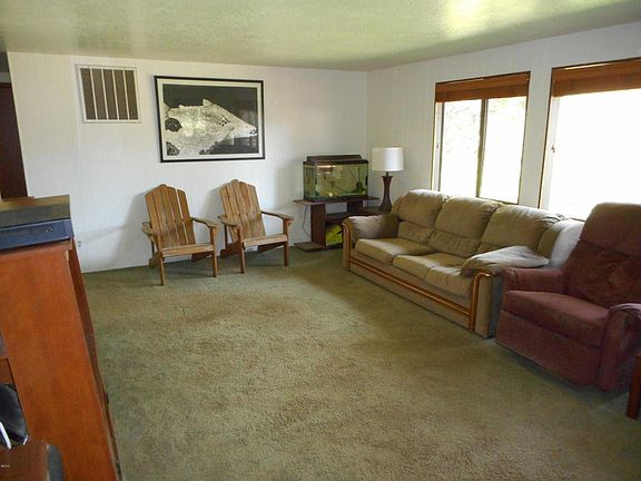 This is truly a one of a kind property consisting of 4.93 acres, 4 tax lots with the possibility of additional building sites and it is at the end of the road with complete privacy! The home has 3 beds and 1.5 baths, large open kitchen and living room, single garage plus a carport, two large decks and plenty of storage. The property is fenced for animals and there is a barn, shop, shed and greenhouse! Recent upgrades include attic insulation, 1000 gallon water holding tank, ultra violet water filter system, three ply kitchen window and new exterior painting. This home has hunting out it's back door and fishing very close!! This is a must see property for anyone that wants their privacy!