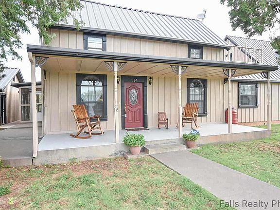 This wonderful country property doesn't disappoint when it comes to views! Just over 6 acres with pond, trails, wildlife, barn, & tack room. The home features five bedrooms, 2 baths and sixth bedroom is isolated with outside access. Open living, dining & kitchen with center island, newer appliances, new flooring in living area, two new central HVAC units and duct work, & recent storm cellar. Large screened in porch for entering and enjoying the views. Oversized detached 2 car garage. Holliday ISD.