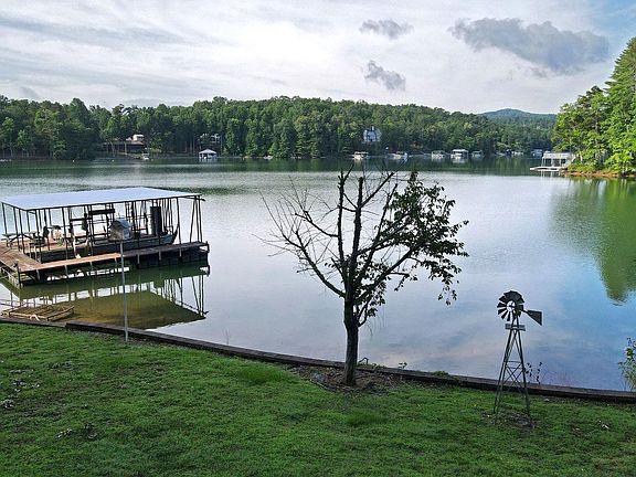 Deep Water Point on Lake Nottely. 200+ft of frontage. Fabulous opportunity on the North side of the lake close to a Marina and The open waters near the Dam. This property offers 4brs, 3 full baths, BIG 25+ft Living room w/ Cathedral ceiling, open plan. Lake side porch enclosed & finished into a sunroom. Master suite on the main floor, tremendous closet. Laundry room. Generous guest rooms on upper level w/ Shared bath. Lower level has Full apartment w/ kitchenette, small den, bedroom, bath, laundry room, 2 car garage. Lots of parking. GORGEOUS Yard with gentle walkway to the lake. Huge multi slip covered Dock (needs walkway repaired). 3 HVAC systems. Tankless water heater,, generic generator. Gas line in Fireplace.